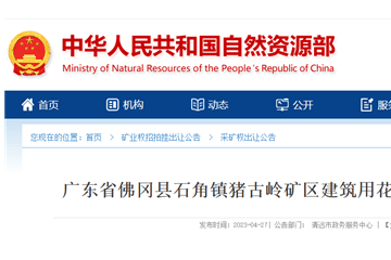 近日,自然資源部礦業(yè)權(quán)市場發(fā)布了廣東清遠佛岡縣石角鎮(zhèn)豬古嶺礦區(qū)建筑用花崗巖礦采礦權(quán)掛牌出讓公告。該礦資源儲量7679.33萬方,年產(chǎn)規(guī)模400萬方,出讓年限21.3年,起始價8.8億元。掛牌時間2023年5月26日至2023…