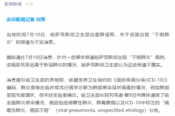 7月9日,中國駐哈薩克斯坦大使館發(fā)推文提醒稱,6月中旬以來阿特勞州、阿克糾賓州和奇姆肯特市肺炎發(fā)病率較同期顯著升高。截至目前,三地已有近5百人感染、30余人病危。今年上半年,哈肺炎共導(dǎo)致1772人死亡,僅6月…