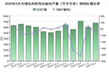 日前從國家統(tǒng)計局和中國建材聯(lián)合會了解到,隨著國內(nèi)疫情好轉(zhuǎn),全國大理石和花崗石板材產(chǎn)量明顯上升。2020年5月,全國大理石和花崗石板材產(chǎn)量為6784.06萬㎡,比4月份(3777.16萬㎡)增長79.6%,但比去年同月仍降低…