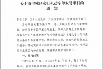 限行通知根據(jù)市大氣污染防治工作領(lǐng)導(dǎo)小組通知要求,12月16(明天)至12月31日我市主城區(qū)實(shí)行機(jī)動(dòng)車單雙號限行。為有效應(yīng)對重污染天氣,進(jìn)一步減少機(jī)動(dòng)車污染物排放,加快改善市區(qū)環(huán)境空氣質(zhì)量,保障人民群眾身體…