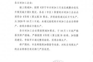 汶上縣石材加工行業(yè)轉(zhuǎn)型升級(jí)工作領(lǐng)導(dǎo)小組通知各石材加工企業(yè):接上級(jí)通知,按照《濟(jì)寧市石材加工行業(yè)壓減整合優(yōu)化升級(jí)實(shí)施方案》規(guī)定,各縣(市區(qū))保留的石材加工企業(yè)必須符合《導(dǎo)則(第五版)》要求,并經(jīng)驗(yàn)收通過(guò)后…