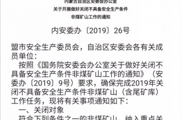 近日,自治區(qū)安委會辦公室印發(fā)了《關(guān)于開展做好關(guān)閉不具備安全生產(chǎn)條件非煤礦山工作的通知》,要求從8月16號開始到年底,全區(qū)計(jì)劃年底前關(guān)閉70多座非煤問題礦山,消除安全隱患。據(jù)了解,通知明確關(guān)閉對象包括:存…