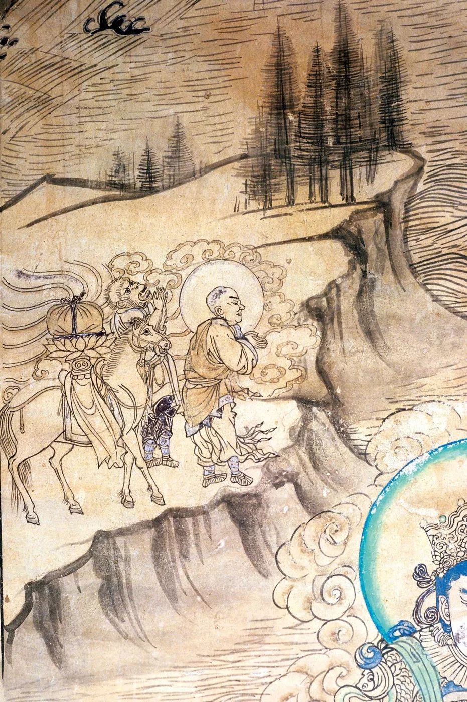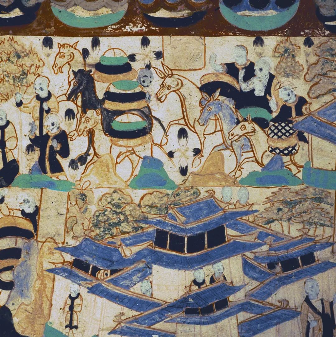 ▲ 莫高窟姊妹窟(榆林窟)中的“西游記”(白馬馱經(jīng);西夏)。這種繪畫手法更重線條,與前者不同。攝影/吳健