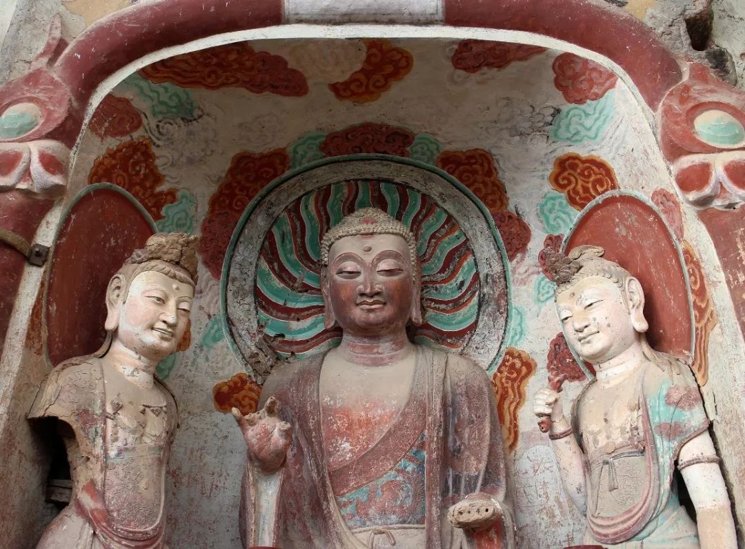 ▲ 一佛二菩薩的組合在石窟中很常見。他們面帶微笑,平易近人。圖/視覺中國