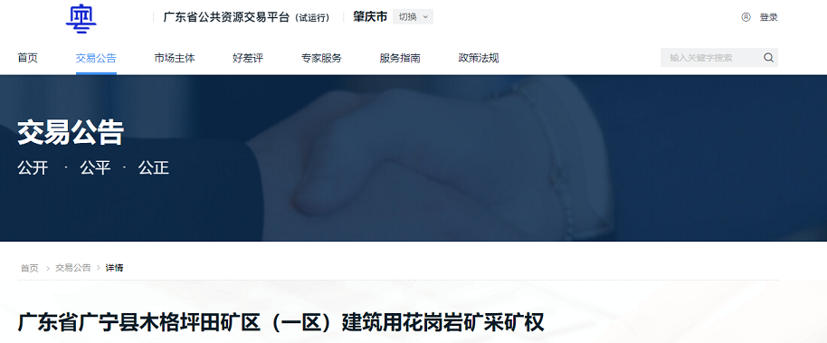 廣東省廣寧縣木格坪田礦區(qū)(一區(qū))建筑用花崗巖礦采礦權(quán)出讓公告
