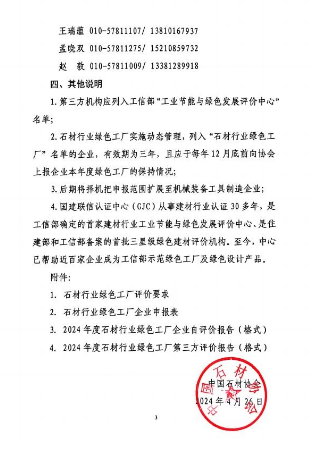 2.石材行業(yè)綠色工廠實(shí)施動(dòng)態(tài)管理,列入“石材行業(yè)綠色工廠”名單的企業(yè),有效期為三年,且應(yīng)于每年12月底前向協(xié)會(huì)上報(bào)企業(yè)本年度綠色工廠的保持情況;