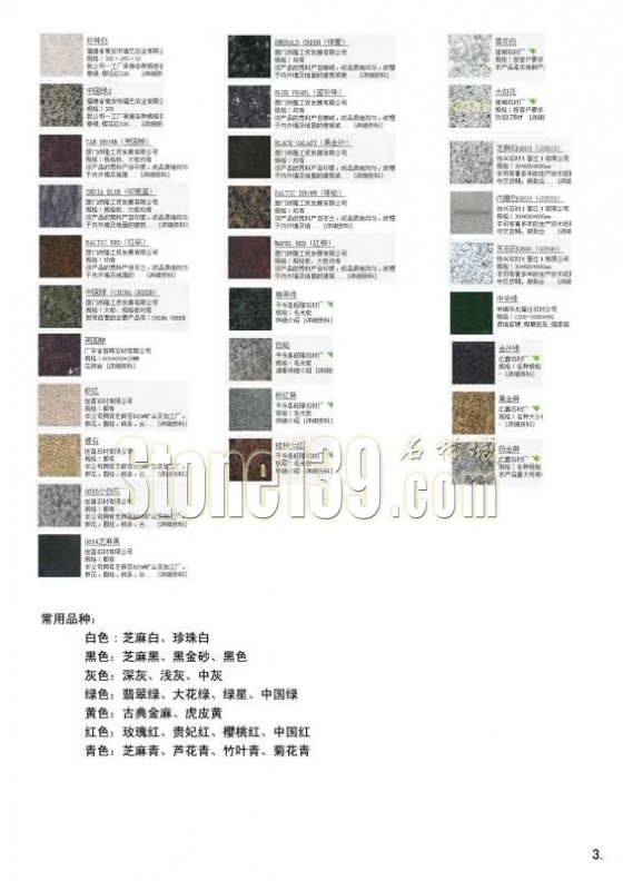 芝麻黑 蝦紅 銹石 青石 塞北金麻 中國黑 山西黑 蒙古黑 墨玉黑 豐鎮(zhèn)黑 珍珠白 石島紅 菊花黃 楓葉紅 承德綠 芝麻白 福鼎黑 江西綠 安溪紅 丁香紫 九龍壁 珍珠花櫻花紅 山東白麻 羅源紅 天山紅 金彩麻 雪花青 翡翠綠 珍珠紅 大白花 將軍紅 岑溪紅 石榴紅 燕山紅 巴厝白 內(nèi)厝白福建白麻 三堡紅 桂林紅 柏坡黃 永定紅 同安白 桃花紅 金鉆麻 豹皮花 齊魯紅 海浪花 森林綠 黑白花 紫羅蘭 泉州白 漳浦紅漳浦青 嶗山灰 平度白 文登白 粉紅花 牡丹紅 吉林白 濟(jì)南青 嶗山紅 惠東紅 中國綠 西麗紅 蝴蝶綠 漳浦黑 浪花白 五蓮紅 冰花蘭魯灰 壽寧紅 中國紅 天山藍(lán)寶 粉紅麻 河北黑 萬年青 蝴蝶藍(lán) 黃金麻 虎皮白 夜玫瑰 虎皮紅 墨玉 蝦紅 三寶紅 孔雀綠 新疆紅中國棕 翡翠綠 芝麻灰 藍(lán)鉆 霸王花 銹石 燕山綠 金鉆 揭陽紅 水晶綠 水晶石 藍(lán)寶 菊花綠 古典灰麻 高粱紅 中磊紅 黑珍珠粉石英 綠石英 粉砂巖 海洋綠 石榴紅 晶白玉 天寶紅 木紋綠 幻彩麻 冰花綠 天青石 綠鉆 雪里梅 代代紅 濟(jì)南青紫點(diǎn)綠鉆