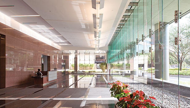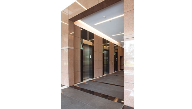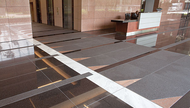 整個項目花了一年半的時間里從開始到結束完成設計,約9600平方英尺的紅色花崗巖,3200平方英尺的Mesabi黑色花崗巖和2600平方英尺的冷泉黑色花崗巖拋光,打磨和熱完成工作——由Coldspring冷泉,MN。 的材料被用于部分外立面,內部大堂墻壁和地板上。 此外,拋光切諾基白色大理石鋪路材料,由田納西大理石公司Friendsville,TN,被合并為口音到地板的模式。