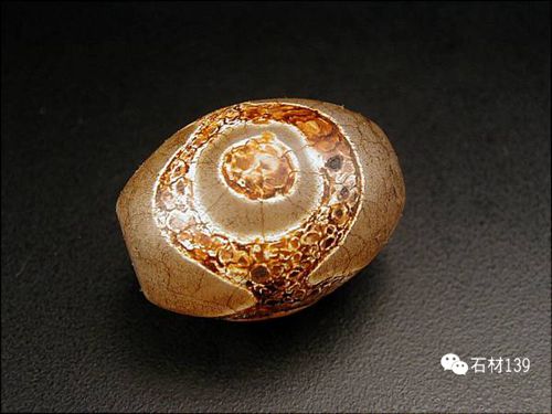 二:瑪瑙紋眼石珠。也是一種火成巖天眼珠,由于成巖時的紊流及地質(zhì)地理環(huán)境而造就。在各種沉積中都有存在,由于風(fēng)沙水流搬運(yùn)億萬年而質(zhì)色各異,不乏珍品。