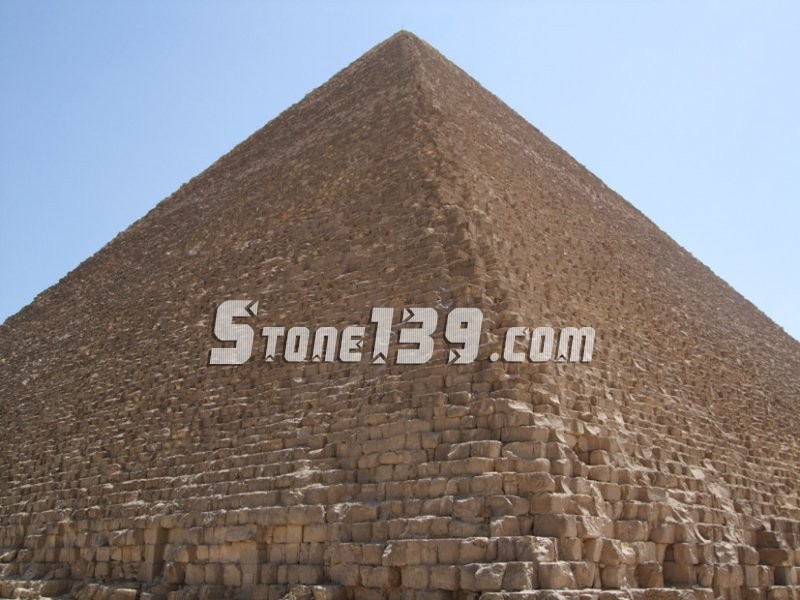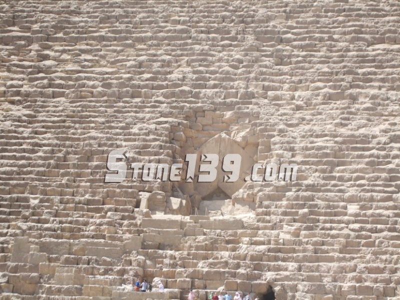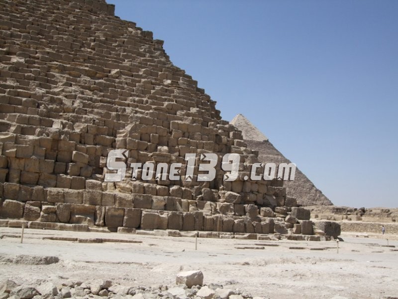 塊石是從內(nèi)向外依次擺放的。為了提升起這些巨石,很有可能借助一種坡道,用滑動(dòng)裝置拖曳石塊。也可能使用腳手架來放置這些石灰石覆蓋層。目前僅在卡弗雷金字塔的頂部尚依稀可見這種覆蓋層。我們認(rèn)為,磨光是由頂部至底部進(jìn)行的。但能夠肯定的是,在建造這些金字塔時(shí),沒有使用任何鐵制工具、馬達(dá)或輪子。