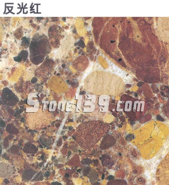 反光紅是一種石灰質(zhì)礫巖。其采石場位于西班牙卡斯蒂利亞和萊昂自治區(qū)的索利亞省,月生產(chǎn)力為400立方米。目前通常用于內(nèi)墻、洗手池臺(tái)面及其它裝飾,如柱子、桌子和附件等。最常見的工程板為磨光板,但也有浮石磨光板和切割板。以塊石的方式銷售。從古代人們便開始開采這種大理石,如羅馬人在克魯尼亞就已經(jīng)使用了,后來在布爾戈斯大教堂、埃爾埃斯科利阿爾修道院和馬德里的皇宮中均被采用。