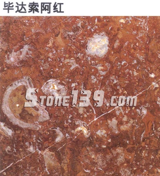 這種大理石在西班牙被稱之為畢達(dá)索阿紅,在其他國家叫丹尼爾紅。其采石場位于西班牙北部納瓦拉省的比利牛斯山脈,自50年前開始開采,規(guī)模巨大。建議的工程板為磨光板和火燒板,可在各種墻面、地面和立面中使用。