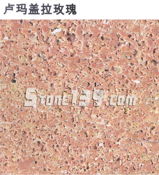 盧瑪蓋拉玫瑰采石場位于西班牙東南部的阿爾瓦省,于10年前開始開采。這種石材由海洋化石、石英和地英巖構(gòu)成。堅(jiān)固、地址均勻,研磨性強(qiáng)。在開采工程中損失很少。平均月生產(chǎn)能力為350立方米。主要用于室內(nèi)裝飾,也用于整個(gè)工程。其工程板為浮石磨光板。