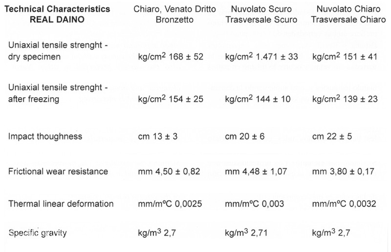 這款石材的年產(chǎn)量大約為200,000噸。如今,有8個(gè)采石場(chǎng)在進(jìn)行開采,總共有15家公司在加工這款石材。采石場(chǎng)的深度為600米。由于易破損,紋理會(huì)變動(dòng)等問(wèn)題,開采Real Daino有些困難。這款石材具有高度結(jié)晶的特性。