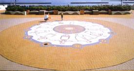 日本靜岡熱海市居住區(qū)廣場上以“宇宙·人類”為主題的鋪地圖案