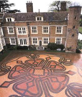 英國私人宅院前的大型鋪地廣場,以27000塊黏土地磚鋪設出玫瑰型迷宮