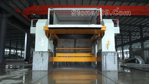 鋸解花崗巖荒料,肖氏硬度HS80以上,可用3.5毫米鋸片,鋸縫寬度為5毫米,鋸解速度40-60mm/h鋸縫窄,出材率高。
