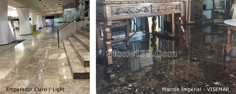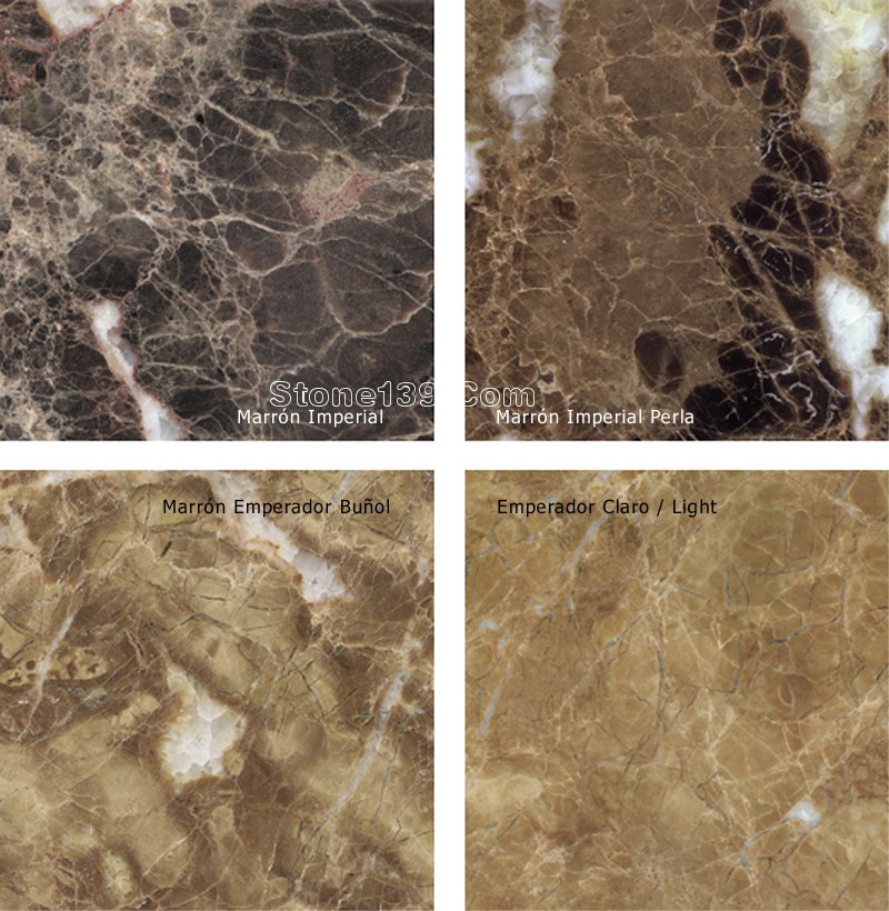 這款石材的顏色,質(zhì)地和高拋光度使其呈現(xiàn)光澤,其商品名正是引用了這項(xiàng)特點(diǎn):Mármol Marrón Imperial(深啡網(wǎng)大理石)顏色偏深而Marrón Emperador(深金峰大理石)則顏色較亮。