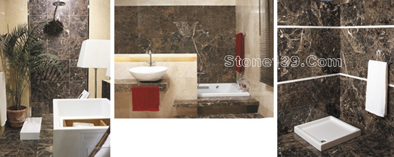 這款石材顆粒細(xì)、機(jī)械強(qiáng)度大,可以進(jìn)行各種不同的石材面層處理:亞光面、仿古面、荔枝面、火燒面、噴砂面、噴丸面,還有使用最廣泛的拋光面。它的拋光面亮度高,精益求精,取名皇帝(Emperador)實(shí)至名歸(深金峰大理石在西班牙取名為Emperador皇帝)。
