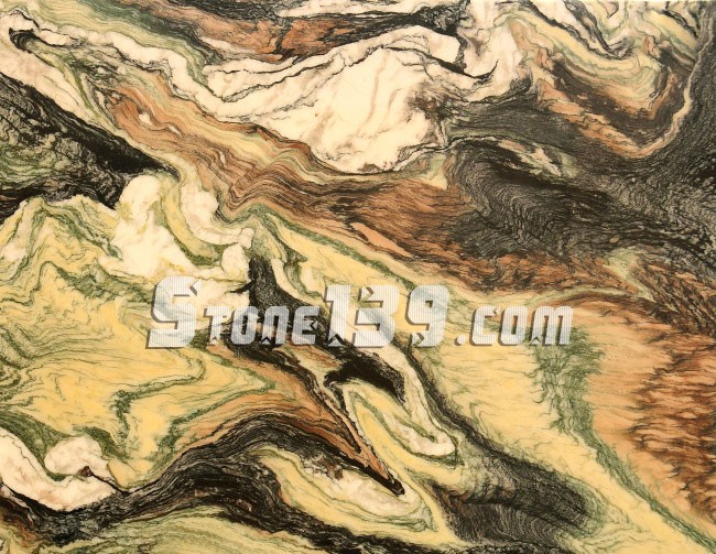 多體組合花紋呈現(xiàn)出并列和類似的并行。石材中交錯(cuò)的粗紋與細(xì)紋、粗紋與細(xì)紋加斜向細(xì)紋、粗紋加細(xì)紋再加粗紋等各種不同的花紋圖案,它們的排列變化形態(tài)極為豐富,具有各種不同的藝術(shù)變化裝飾效果。趨向丁細(xì)直紋或紋間距稀疏的骨骼類花紋可以表現(xiàn)細(xì)小、單薄、敏銳或脆弱的性格,裝飾的空間可以使人感到敞亮和擴(kuò)大。趨向細(xì)而密的直骨骼類花紋給人的印象是精致、細(xì)膩、華麗或輝煌。趨向粗而密的直骨骼類花紋,其紋理可以反映粗壯、笨拙、堅(jiān)固等心理狀態(tài),并有空間被縮小的感覺。趨向粗而稀疏的直骨骼類花紋,所反映的表情是粗獷、剛直、豪放,裝飾的空間有擴(kuò)大感。折線式粗、細(xì)紋組合形花紋有節(jié)奏感和藝術(shù)變幻魔力,有空間立體感。對于粗、細(xì)紋組合形花紋來說,因?yàn)樵谑闹破返谋砻骘@現(xiàn)出的曲線絕大多數(shù)是自由式曲線,一船難以處理,所以在構(gòu)圖時(shí),一般從曲率的主從骨骼關(guān)系上予以至視.因而要有起伏,要有規(guī)律性的變化和趨向性,粗、細(xì)紋在數(shù)量上要有優(yōu)勢性和趨向性,以便產(chǎn)生輕盈、柔和、生動和瀟灑的情感。在石材中粗、細(xì)直紋與曲線紋組合類型的花紋很多,它們中有的花紋形狀比較復(fù)雜,形的變化方式有并列、交錯(cuò)、重復(fù)、變異、密集、相切和連續(xù)等,一般難以分選,運(yùn)用時(shí)應(yīng)加以趨向性區(qū)別分類,常規(guī)做法是以粗花紋為主導(dǎo)花紋和主導(dǎo)方向,細(xì)花紋做次要方向去設(shè)計(jì)飾面構(gòu)圖,以求得存異、反襯,并達(dá)到統(tǒng)一和諧的目的。尤其是在粗、細(xì)花紋的連接時(shí)一定要克服粗細(xì)極化對比的畫面,這樣才可加強(qiáng)花紋方向的主格調(diào),并使花紋的形式生動有趣。當(dāng)遇到有中粗花紋存在的情況時(shí),必須用斜向紋、紋間帶有插花紋形或者粗細(xì)紋組合類型的花紋作為過渡橋,以緩解方向?qū)Ρ鹊膹?qiáng)度,求得視覺感的平衡點(diǎn):讓整體的造型藝術(shù)更具有感染力,這就是次要方向的作用。