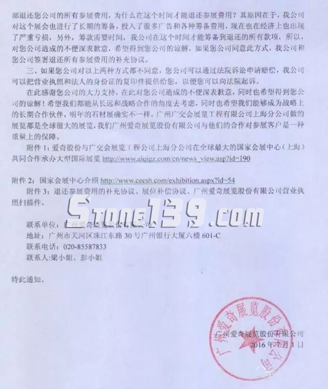 從承辦方獲悉,對(duì)于已經(jīng)繳納參展費(fèi)用的企業(yè),承辦方已提出了三種不同的解決方案以供選擇。第一種方案是雙倍展位補(bǔ)償,就是說如果此次已經(jīng)繳納參展費(fèi)用的企業(yè),如果明年愿意參展,那么就給予企業(yè)雙倍展會(huì)的補(bǔ)償;第二種方案是退款,但需等到9月1日之后;第三種方案就是訴訟,如果參展企業(yè)對(duì)以上兩種方案都不滿意,可以選擇向法院訴訟。