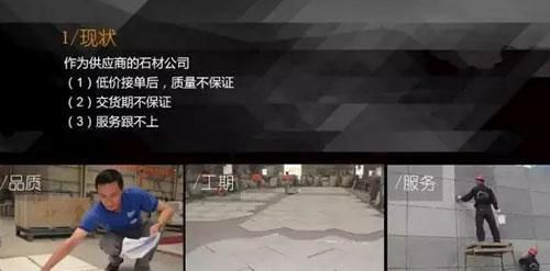 所以,我今天在這提出這個觀念來呢,實際上是想跟大家分享。如果這個方式錯了,我們可以坐下來,找一些解決問題的方法。不是沒有方法,有很多的方法可以讓我們石材人活的很痛快,讓我們裝飾人活的也很痛快。我們共同的目標,是要我們的甲方滿意,是要他花相應的錢能夠得到相應的服務(wù),得到相應品質(zhì)產(chǎn)品的東西。