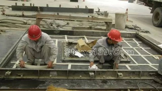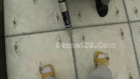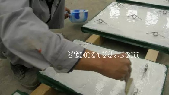 下面講到重點(diǎn),石材是務(wù)必要做背面處理的,目的有三:一是杜絕石材直接與混凝土接觸表面而出現(xiàn)的泛堿白樺現(xiàn)象;二是吸收石材與混凝土因熱膨脹率不同而發(fā)生的微小相對(duì)變位,三是預(yù)防沒(méi)有錨固部分石材發(fā)生裂縫斷裂時(shí)的掉落。(所用到的材料是樹(shù)脂膠,硅砂以及防水密封膠)