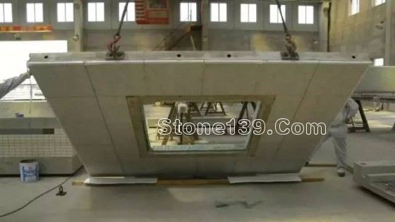 目前預(yù)制混凝土石材反打工藝可以說(shuō)是較為成熟的技術(shù),但在開(kāi)發(fā)初期并不是這樣。經(jīng)過(guò)了石材膨脹率、與混凝土的粘結(jié)強(qiáng)度、大氣暴露、水浸等大量試驗(yàn)后才有了現(xiàn)階段比較完善的石材反打工藝。