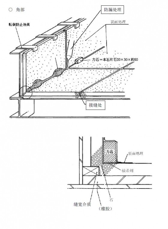 貨場(chǎng)堆積以及工地現(xiàn)場(chǎng)搬入時(shí),要充分注意保護(hù)措施,以防止石材表面發(fā)生磕碰損壞。