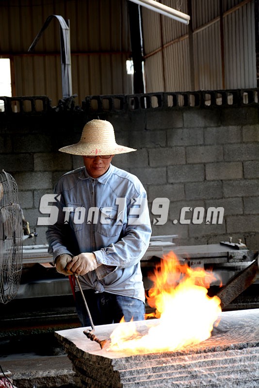 4、火燒石材表面外觀單調(diào)糙面的粗細(xì)程度完全由巖石結(jié)晶程度來(lái)決定,粗粒結(jié)構(gòu)的巖石其火燒面必定粗拙,細(xì)粒機(jī)構(gòu)的巖石相對(duì)細(xì)膩一些,換句話說(shuō),火燒面的粗拙 程度不能人為控制,只能順其天然。