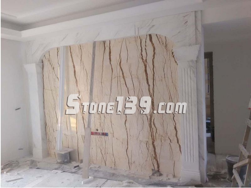 家裝背景墻 全石材裝飾 美尼斯金 富貴金龍大理石