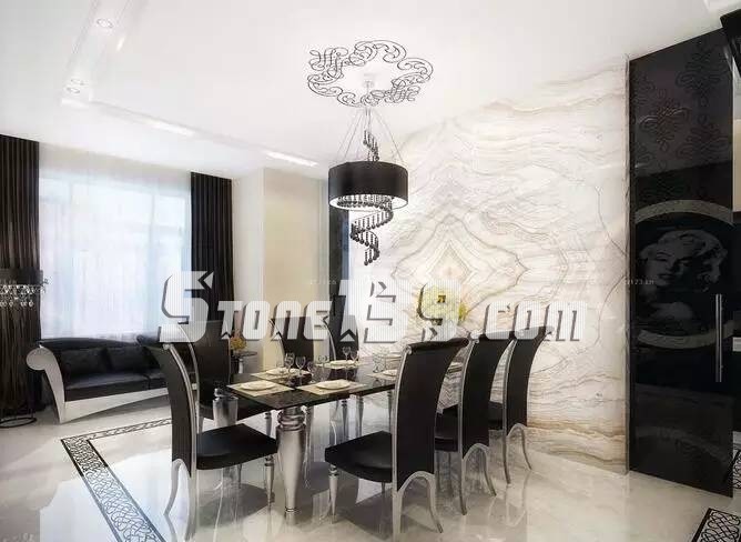 作為客廳的主視覺焦點(diǎn),背景墻往往是一個(gè)裝飾亮點(diǎn),如果你想自己的家裝飾得比較有個(gè)性,可以選擇天然紋理大理石做裝飾墻。天然石材花紋自然,能很好地表現(xiàn)創(chuàng)作意圖,適合在墻面上做藝術(shù)造型。