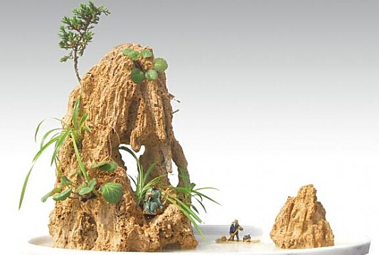 上水石又被稱之為吸水石,之所以被這樣叫做是因為盆中蓄水后,頃刻可吸到頂端。石上可栽植野草、蘚苔,青翠蒼潤,是制作盆景的上好石材。