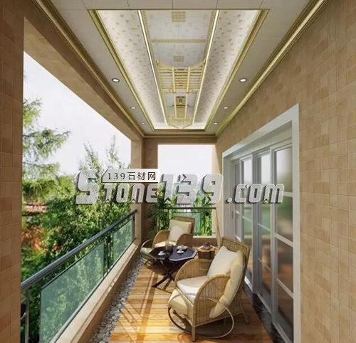 陽臺吊頂,以馬賽克為設計靈感,沒有濃妝重彩,但能完美貼合自然的純粹。同時,吊頂和馬賽克墻磚搭配,整體格局和諧統(tǒng)一。瞬間,小小的陽臺,就成為了馬賽克藝術(shù)的專屬殿堂。