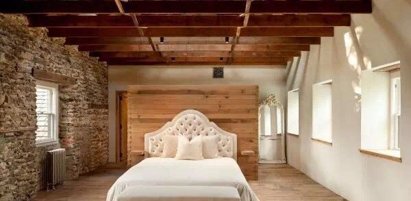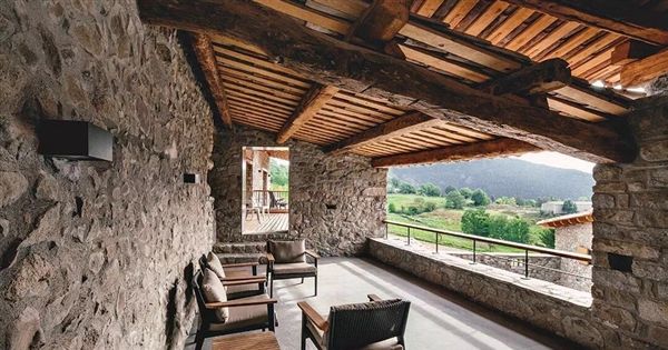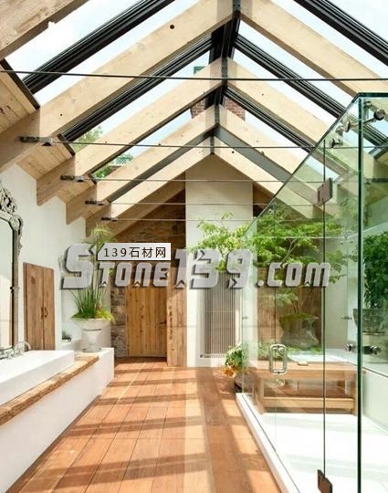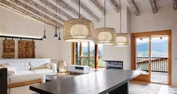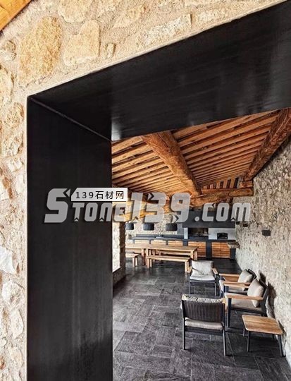 主要打造內(nèi)部墻立面和屋頂。把屋內(nèi)大部分非承重隔墻打掉,最大化的開放空間,保持石材的墻壁,木架結(jié)構(gòu)進行粉刷。