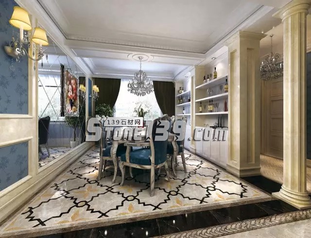 而天然大理石每一片都是大自然造化的結(jié)果。如同世界上沒有完全相同的兩片葉子,世界上也沒有完全相同的兩片大理石。所以,天然大理石鋪貼的效果靈活變化、充滿了自然的韻律感和藝術(shù)感。這是瓷磚永遠(yuǎn)無法超越、到達(dá)的境界。我們能夠一齊來欣賞比較一下: