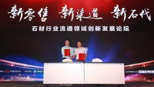 最后,東華環(huán)球石文化產(chǎn)業(yè)園副總經(jīng)理王杰與 亞細(xì)亞董事局主席盧偉堅(jiān),分別代表東華環(huán)球與“建材釆購(gòu)師”平臺(tái)簽署了戰(zhàn)略合作協(xié)議。