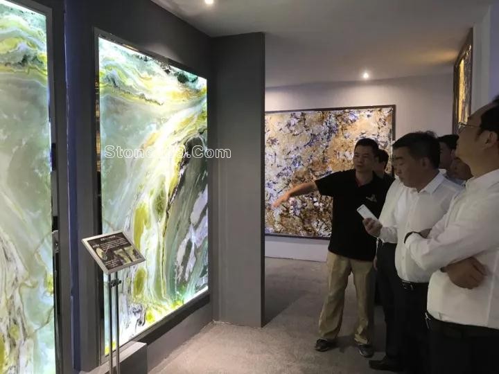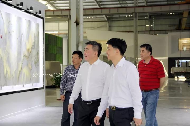 福建省經(jīng)濟和信息化委員會副主任郭學軍,中共南安市委書記王春金,南安市市長林榮忠,南安市常務副市長黃輝燦,南安市常委紀委書記李巖華,南安市人民政府副市長陳洪春,水頭鎮(zhèn)黨委書記柯曉輝,水頭鎮(zhèn)人民政府鎮(zhèn)長蔡清安,南安市經(jīng)濟和信息化委員會主任林良泉,泉州市石材工業(yè)協(xié)會會長王尚云,南安市石材工業(yè)協(xié)會會長王清安等領導在海西物流股份有限公司副總經(jīng)理陳少健等人陪同下,參觀了海西國際石材荒料展,并詳細詢問了參展荒料的產(chǎn)地、質(zhì)地。隨后,還參觀了海西石材城奢石館,在美好石代展館里,王春金表示,石材與光電的結(jié)合,更加充分地展現(xiàn)了石材背景墻的光澤度、色澤度,這種石材創(chuàng)新模式是值得肯定的。