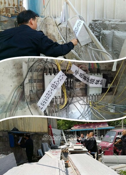 5月2日,平邑縣環(huán)保局、平邑街道辦事處工作人員聯(lián)合對(duì)三家石材加工廠進(jìn)行查處,現(xiàn)場(chǎng)下達(dá)責(zé)令停產(chǎn)整治通知書(shū),責(zé)令其立即停止環(huán)境違法行為,并對(duì)石材加工場(chǎng)所進(jìn)行斷電查封,進(jìn)一步接受執(zhí)法部門(mén)的調(diào)查處理。