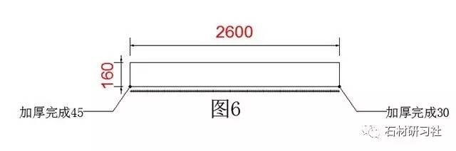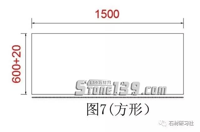 ▼第1個(gè)方形窗臺(tái)(圖7是一個(gè)方形的窗臺(tái),600和1500是水泥的數(shù)據(jù),加20是加厚磨邊的數(shù)據(jù),這樣的好處是以后看到測(cè)量數(shù)據(jù)就明白是否已經(jīng)加厚了,有好多測(cè)量大師回去下單時(shí),不知道是否加了尺寸沒有)