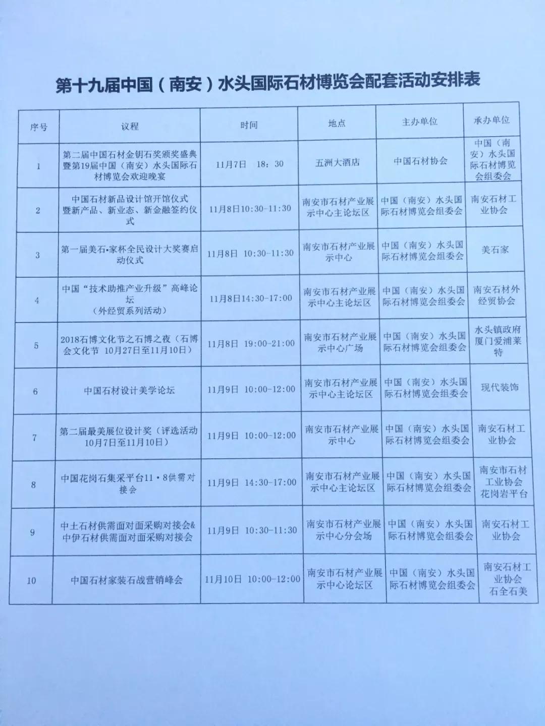 第十九屆水頭石博會(huì)配套活動(dòng)安排表