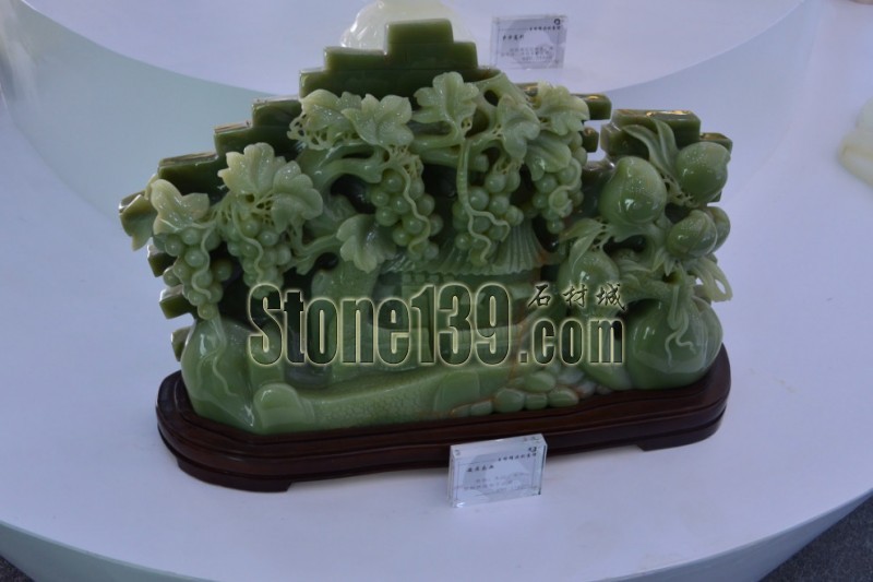 深綠色玉石雕刻工藝品,天然石材精品雕刻
