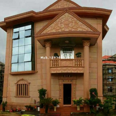 帝王紅石材別墅家裝應(yīng)用案例 窗套 門套 柱子 外墻 欄桿浮雕等外墻別墅裝飾石材應(yīng)用
