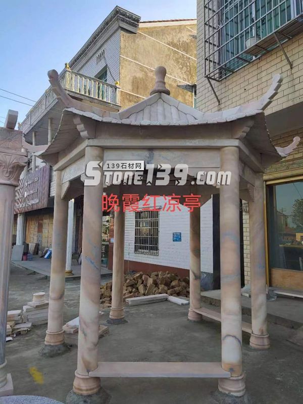 湖南大理石涼亭廠家(晚霞紅) 大理石涼亭 中國風(fēng)裝飾 石雕涼亭