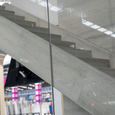 藍木紋大理石樓梯與玻璃的裝飾效果藍木紋大理石樓梯與玻璃搭配可以營造出令人驚艷的裝飾效果: 通透與輕盈感 視覺通透 玻璃本身具有極高的透明度,當(dāng)與藍木紋大理石樓梯結(jié)合時,不會給空間帶來絲毫的厚重感。在樓梯間這種相對狹小的空間中,玻璃的使用能使整個區(qū)域顯得更加開闊。例如,安裝玻璃扶手時,人們的視線可以毫無阻礙地穿過,看到樓梯的整體造型和周圍的環(huán)境,讓空間更具連貫性和整體性。 輕盈質(zhì)感 與傳統(tǒng)的實木或金屬樓梯相比,玻璃的輕盈特性得以凸顯。藍木紋大理石通常會給人一種沉穩(wěn)的感覺,但玻璃的加入中和了這種沉重,使樓梯看起來仿佛懸浮在空中。這種輕盈感在現(xiàn)代簡約風(fēng)格或北歐風(fēng)格的建筑中尤為突出,能為整個空間營造出一種靈動、時尚的氛圍。 光與影的交織 光線穿透 玻璃能夠讓光線自由穿透,無論是自然光還是人工照明。在有陽光照射的白天,光線透過玻璃灑在藍木紋大理石樓梯上,會使大理石的紋理更加清晰、生動。其藍色的紋路在光線的映照下,會呈現(xiàn)出深淺變化,增強了樓梯的立體感和層次感。同時,光線在玻璃表面的反射和折射也會產(chǎn)生豐富的光影效果,如在樓梯下方形成光暈或光斑,為空間增添了一份夢幻般的氛圍。 陰影效果 當(dāng)光線遇到藍木紋大理石和玻璃的不同材質(zhì)時,會產(chǎn)生不同的陰影。大理石的不透明性會形成清晰的陰影輪廓,而玻璃則會使陰影變得柔和、模糊。這種陰影的對比和融合為樓梯創(chuàng)造了獨特的藝術(shù)效果。例如,在夜晚,燈光從側(cè)面或下方照射,樓梯上的陰影和光線相互交織,就像一幅動態(tài)的水墨畫,展現(xiàn)出獨特的魅力。 材質(zhì)對比與融合 對比效果 藍木紋大理石有著天然的紋理和獨特的色彩,是一種充滿自然氣息和質(zhì)感的材料。而玻璃則是光滑、透明且現(xiàn)代感十足的工業(yè)制品。兩者的材質(zhì)對比鮮明,大理石的粗糙紋理與玻璃的光滑表面、大理石的色彩豐富與玻璃的無色透明,形成了強烈的視覺沖擊。這種對比使兩種材料在相互襯托下更加突出各自的特點,讓整個樓梯成為空間中的視覺焦點。 融合之美 盡管兩種材質(zhì)差異巨大,但通過巧妙的設(shè)計可以實現(xiàn)完美融合。比如,在樓梯踏板采用藍木紋大理石,而在扶手和欄桿部分使用玻璃,二者在連接點通過精致的金屬配件過渡。或者將玻璃鑲嵌在大理石踏步中,形成一種錯落有致的布局,使兩者看起來像是一個有機的整體,共同構(gòu)成了一個兼具美觀與功能的樓梯。 風(fēng)格塑造 現(xiàn)代簡約風(fēng)格 在現(xiàn)代簡約風(fēng)格的建筑中,藍木紋大理石樓梯與簡潔的玻璃扶手搭配,線條流暢、造型簡潔。沒有過多的裝飾,僅依靠兩種材質(zhì)的特性來展現(xiàn)簡約之美。大理石的淡雅藍色和紋理為空間增添了自然元素,而玻璃則體現(xiàn)了現(xiàn)代科技感,兩者相得益彰,塑造出時尚、簡潔的空間氛圍。 奢華風(fēng)格 若追求奢華風(fēng)格,可以選擇帶有雕花或紋理的玻璃與藍木紋大理石相結(jié)合。大理石可以經(jīng)過精細打磨和拼接,玻璃上的裝飾可以是金色或銀色的雕花圖案。在燈光的烘托下,這種搭配能展現(xiàn)出**的奢華感,使樓梯成為空間中的奢華焦點,彰顯出高貴的品質(zhì)。 工業(yè)風(fēng)格 對于工業(yè)風(fēng)格的設(shè)計,可選擇有一定厚度和質(zhì)感的玻璃,如復(fù)古的彩色玻璃或帶有氣泡等瑕疵的藝術(shù)玻璃,與藍木紋大理石搭配。金屬連接件可以采用暴露的、具有工業(yè)質(zhì)感的設(shè)計,如粗曠的螺栓、螺母等。這樣的組合能營造出工業(yè)風(fēng)格特有的粗獷與藝術(shù)感并存的氛圍。