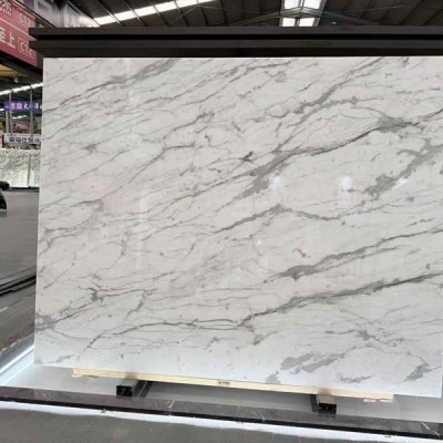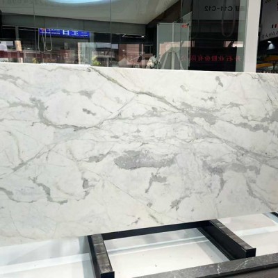 這塊白色大理石的紋路以灰色為主,線條自然流暢、靈動(dòng)飄逸,深淺交織且分布隨性,似天然暈染而成;紋理走向無刻意規(guī)整的規(guī)律,細(xì)窄與寬幅的線條相互交織卻不顯雜亂,整體呈現(xiàn)出優(yōu)雅且富有藝術(shù)感的天然肌理,給人清新又高級(jí)的視覺體驗(yàn)。