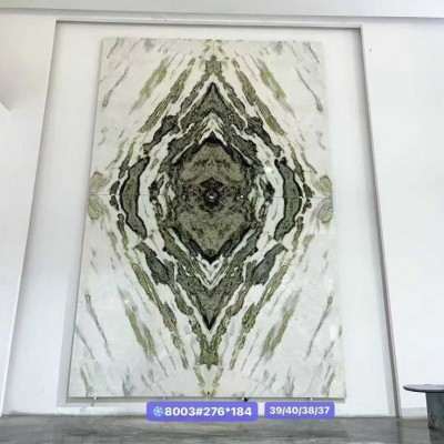 色彩紋理:基底呈深邃的翡翠綠色,交織著白色、灰色甚至黑色的自然紋理,紋理如山水流動或?qū)毷忻姘愀挥兴囆g(shù)感,每一塊石材的紋理都獨(dú)一無二,具有極高的天然美學(xué)價值。