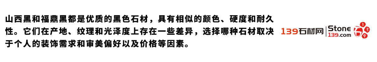 綜上所述,山西黑和福鼎黑都是優(yōu)質(zhì)的黑色石材,具有相似的顏色、硬度和耐久性。它們在產(chǎn)地、紋理和光澤度上存在一些差異,選擇哪種石材取決于個人的裝飾需求和審美偏好。